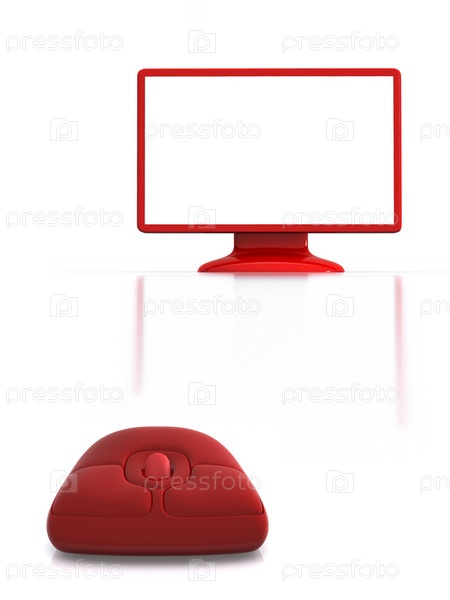 Жидкокристаллический монитор с мышью в 3d на белом фоне