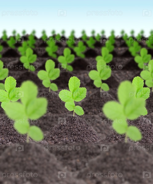 Ряды молодых зеленых растений
