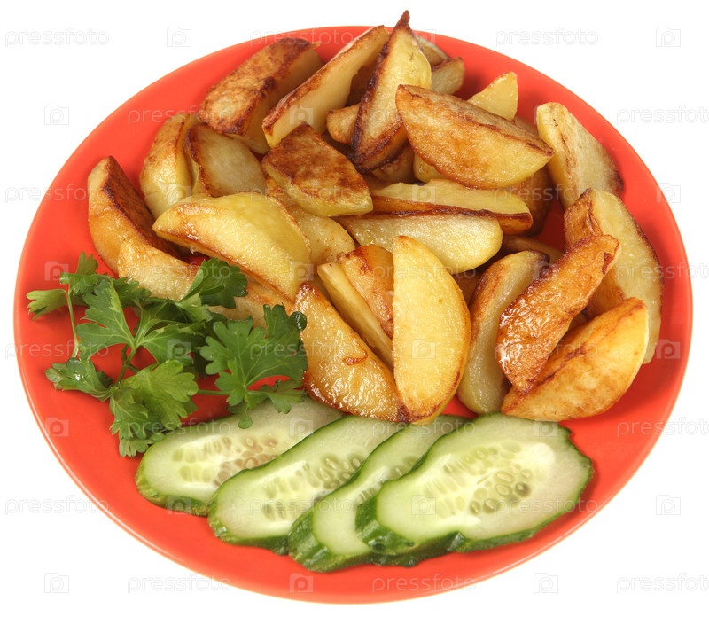 Жареный картофель, огурец и петрушка