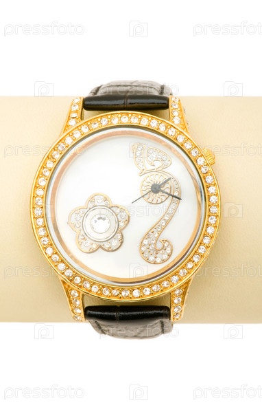 Часы со стразами на белом фоне