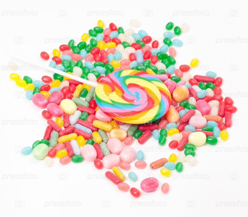 Цветные конфеты на белом фоне