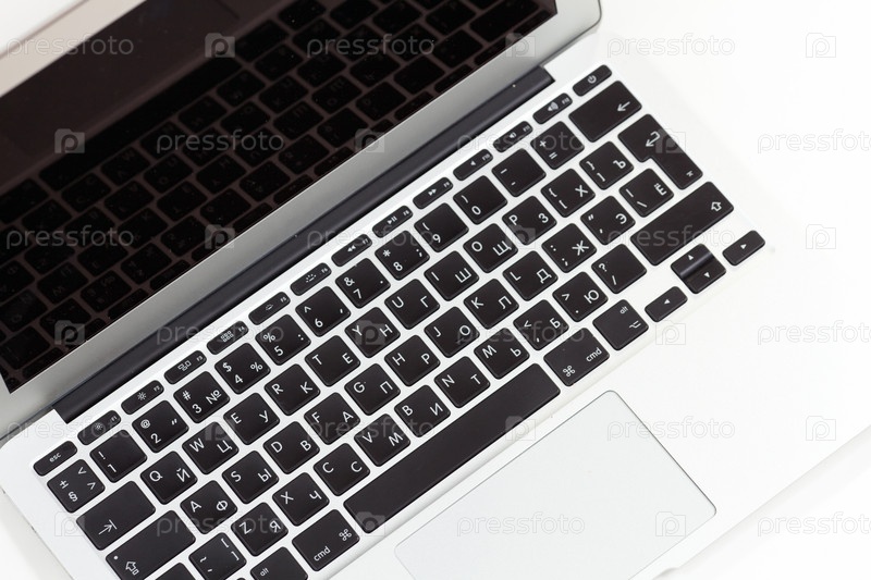 Красивый и элегантный ноутбук на белом фоне. Открытый серебристый ноутбук