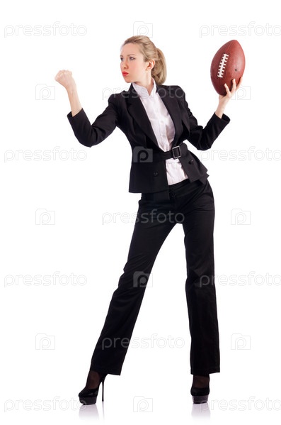Деловая женщина с мячом для американского футбола