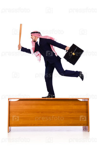 Арабский бизнесмен с бейсбольной битой
