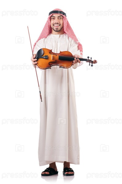 Араб играет на скрипке, изолированный на белом фоне