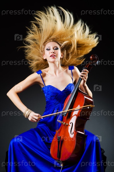 Привлекательная женщина с виолончелью в студии