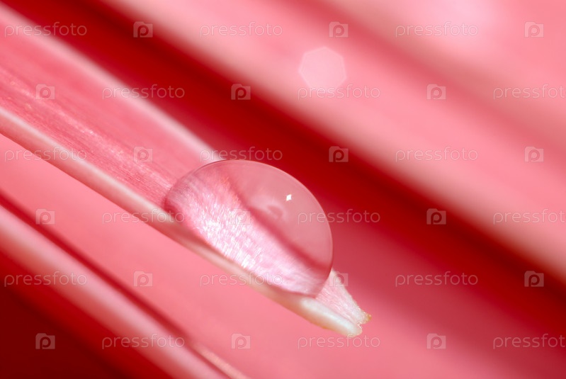 Капля воды на лепестке герберы крупным планом