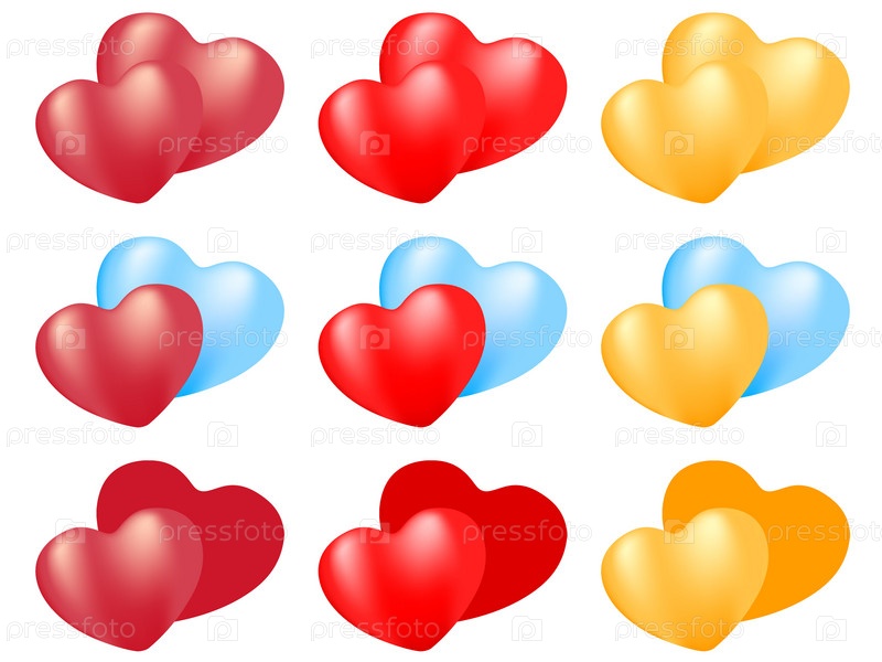 Разноцветные сердца на белом фоне