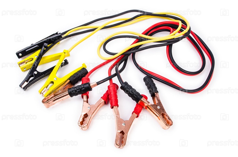 Клеммы автомобильного аккумулятора, изолированные на белом фоне