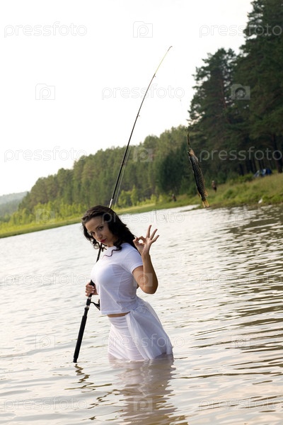 Девушка рыбачит в ребе
