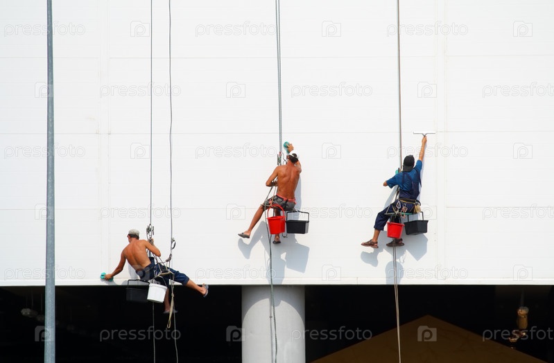 Строители красят стену