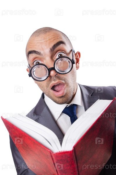 Комичный бизнесмен-ботаник на белом фоне