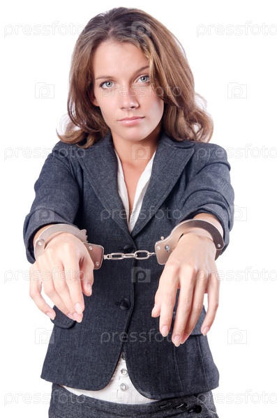 Бизнес-леди в наручниках на белом фоне