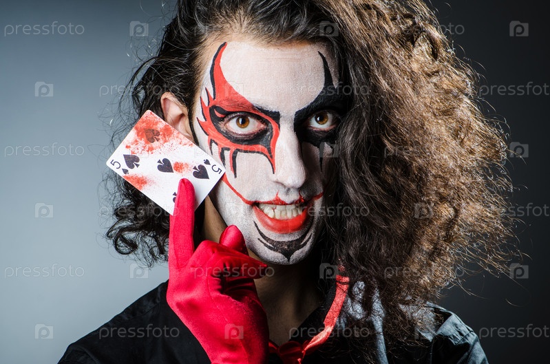 Злой клоун с картами в темной комнате