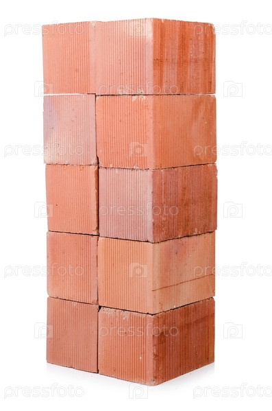 Стопка глиняного кирпича, изолированная на белом фоне