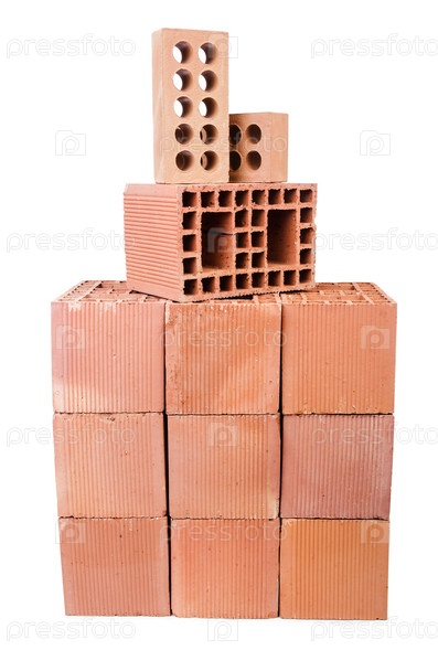 Стопка глиняного кирпича, изолированная на белом фоне