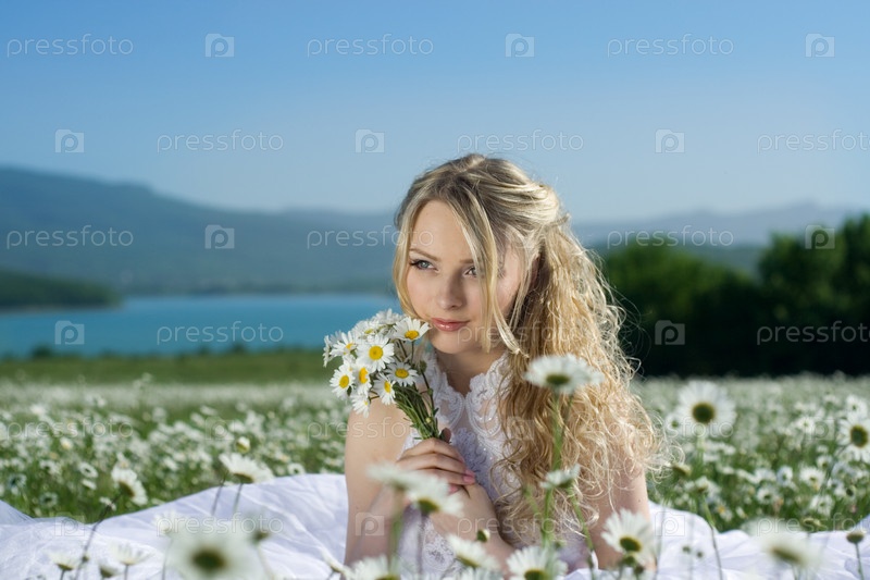 Невеста с ромашками на природе