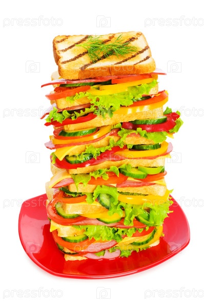 Гигантский бутерброд на белом фоне