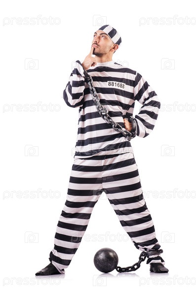 Осужденный преступник в полосатой форме