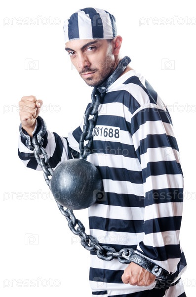 Осужденный преступник в полосатой форме