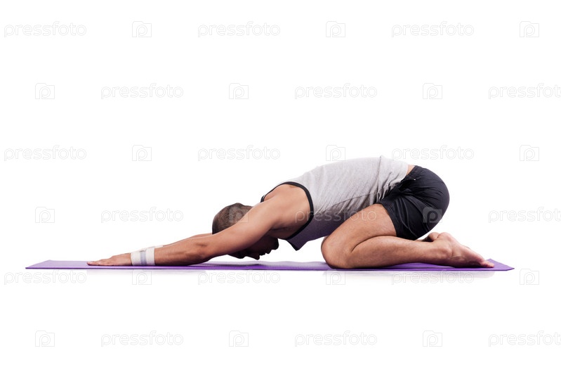 Мужчина делает упражнения на белом фоне