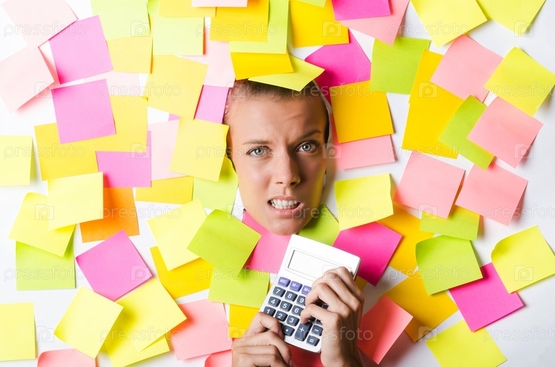 Бизнес-леди с большим количеством заметок
