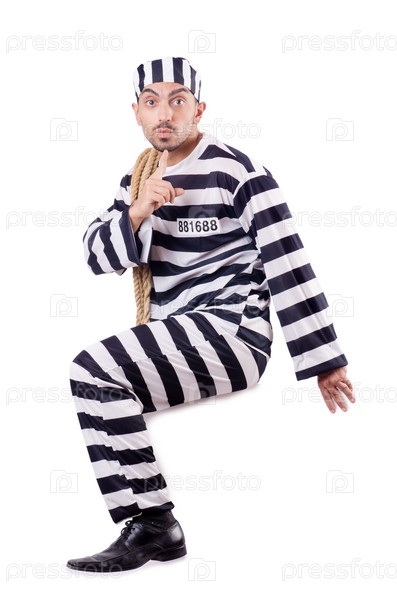Осужденный преступник в полосатой форме