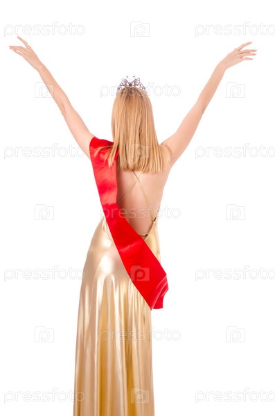 Королева красоты на конкурсе, изолированная на белом фоне