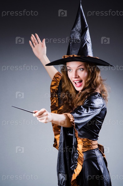 Женщина в костюме ведьмы на празднике Хеллоуина