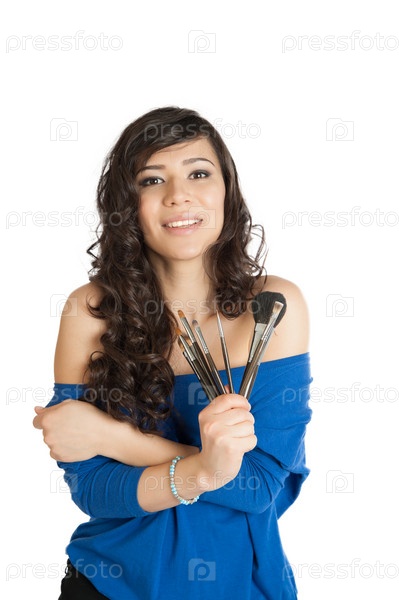 Женщина наносит макияж