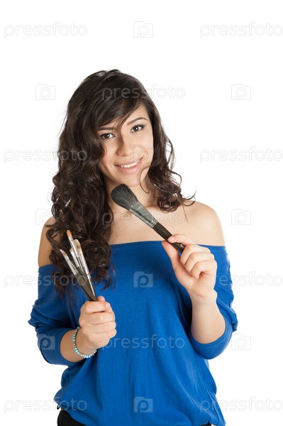 Женщина наносит макияж
