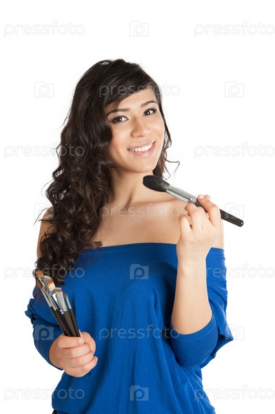 Женщина наносит макияж