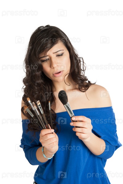 Женщина наносит макияж