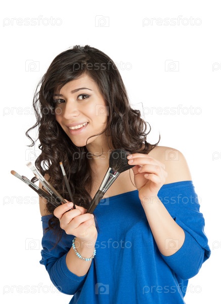 Женщина наносит макияж