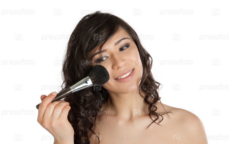 Женщина наносит макияж