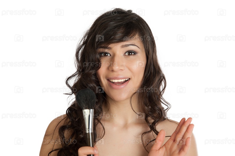 Женщина наносит макияж