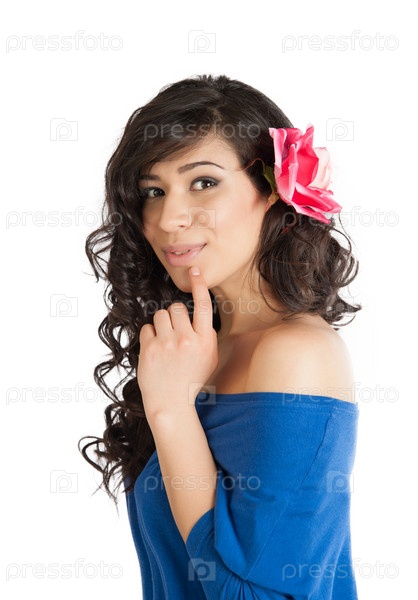 Красивая брюнетка с розой в волосах