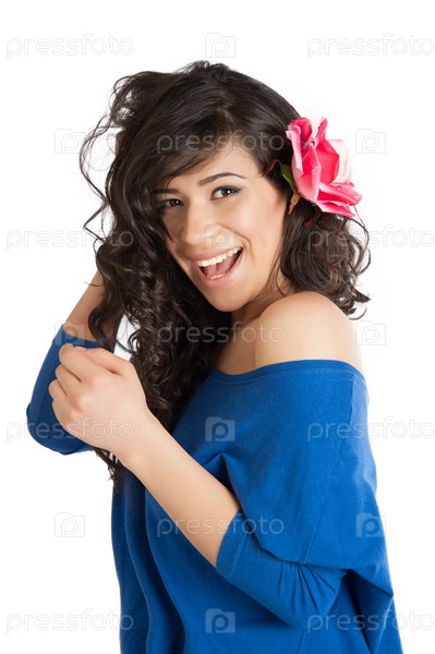 Красивая брюнетка с розой в волосах