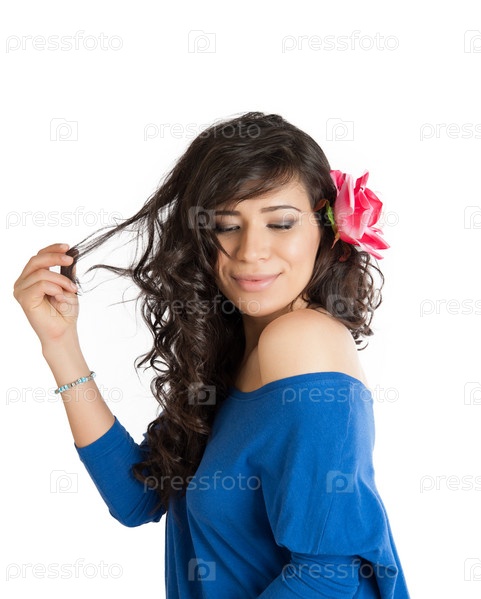 Красивая брюнетка с розой в волосах