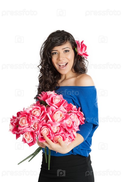 Брюнетка с букетом