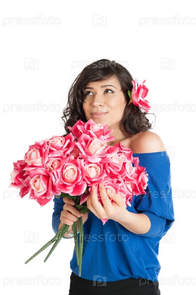 Брюнетка с букетом