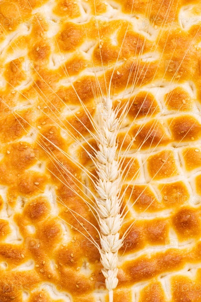Колосок пшеницы на булке хлеба крупным планом