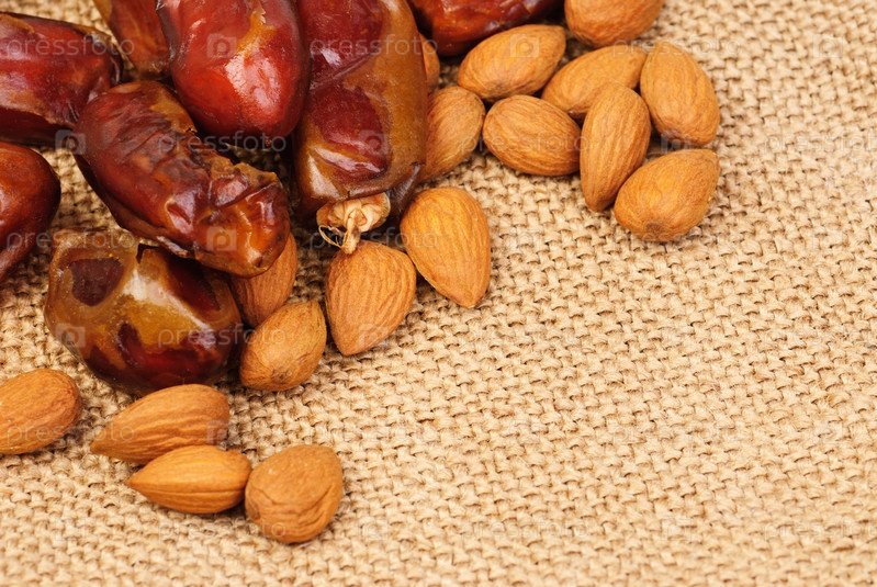 Финики и миндаль на холсте