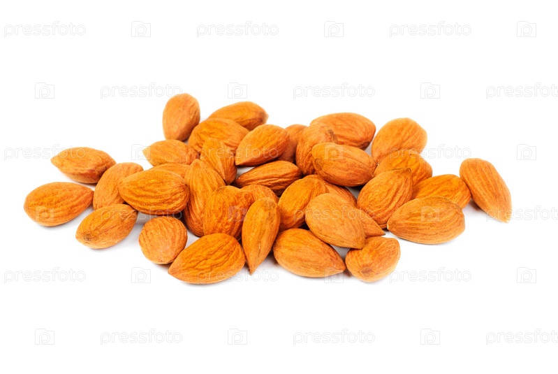 Сушеный миндаль на белом фоне