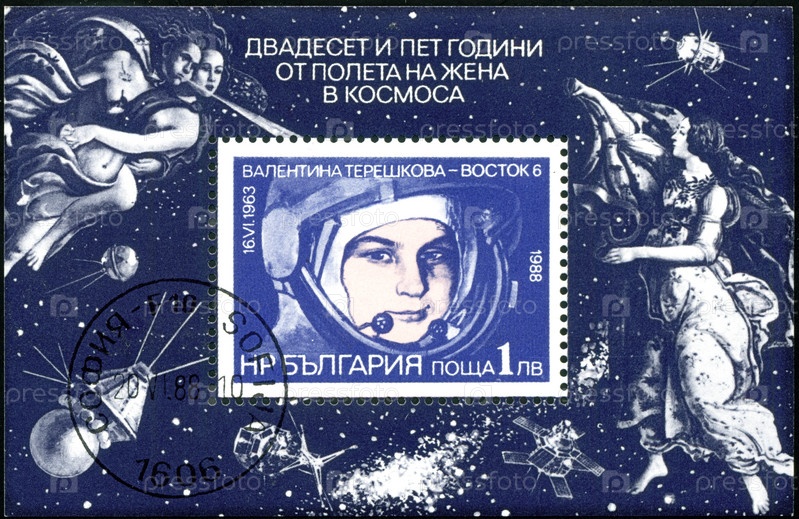 Болгарская марка 1988 года, посвященная 25-летию полета Валентины Терешковой