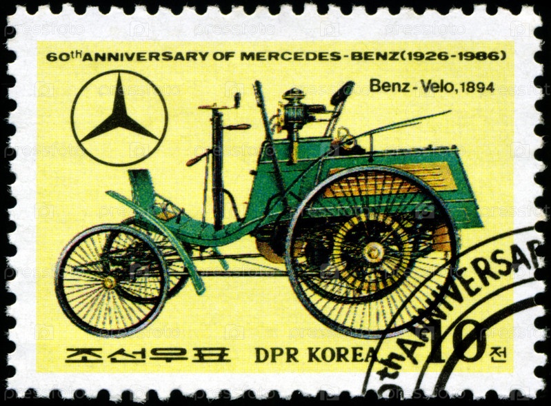 Марка Северной Кореи 1986 года с изображением исторического автомобиля
