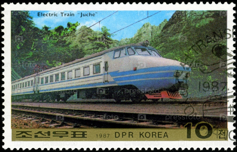 Марка КНДР 1987 года с изображением электрического локомотива