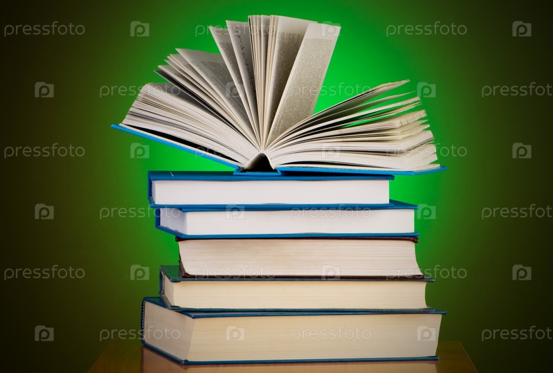 Стопка книг на зеленом фоне