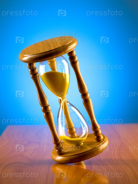 Песочные часы на голубом фоне