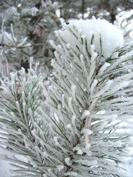 Иней на иглах сосны